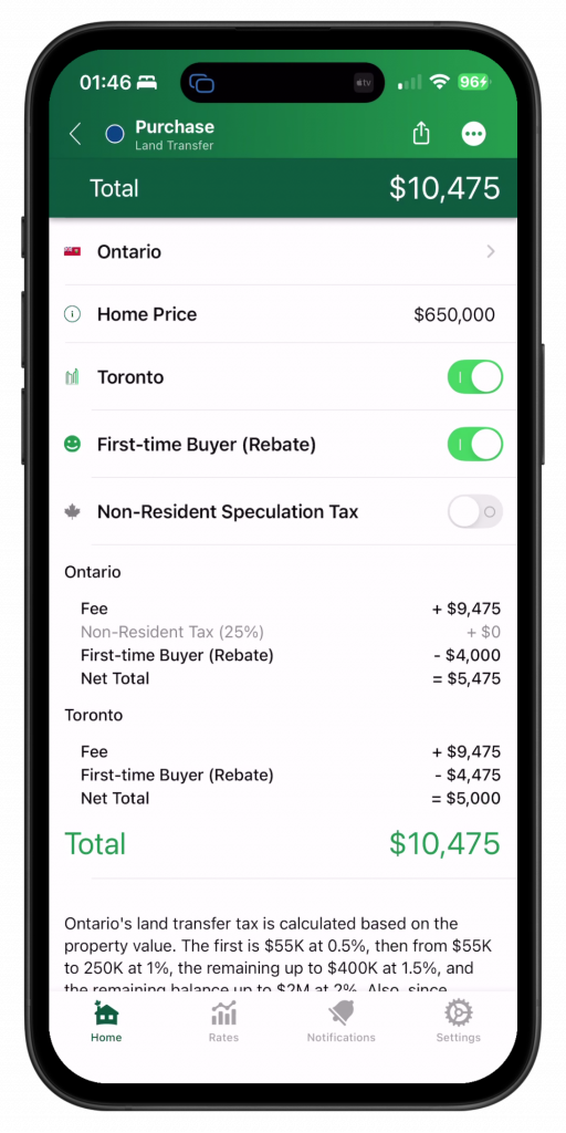 The good news? First-time buyers can get a rebate of up to $4,000 from Ontario and $4,475 from Toronto. These credits help offset one of the largest costs at closing.