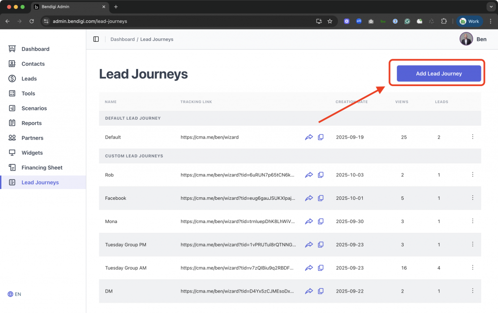 Name each Lead Journey after the platform where you’ll share it. Every link you create is unique, so labelling by platform makes it easy to track and compare performance helping you see which channel delivers the best results.