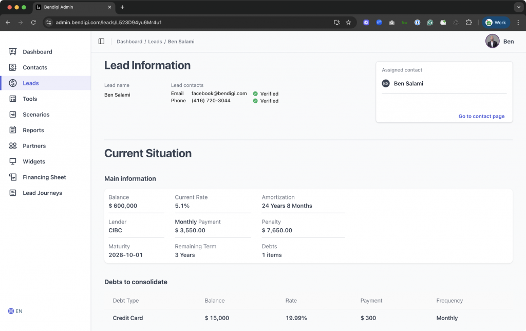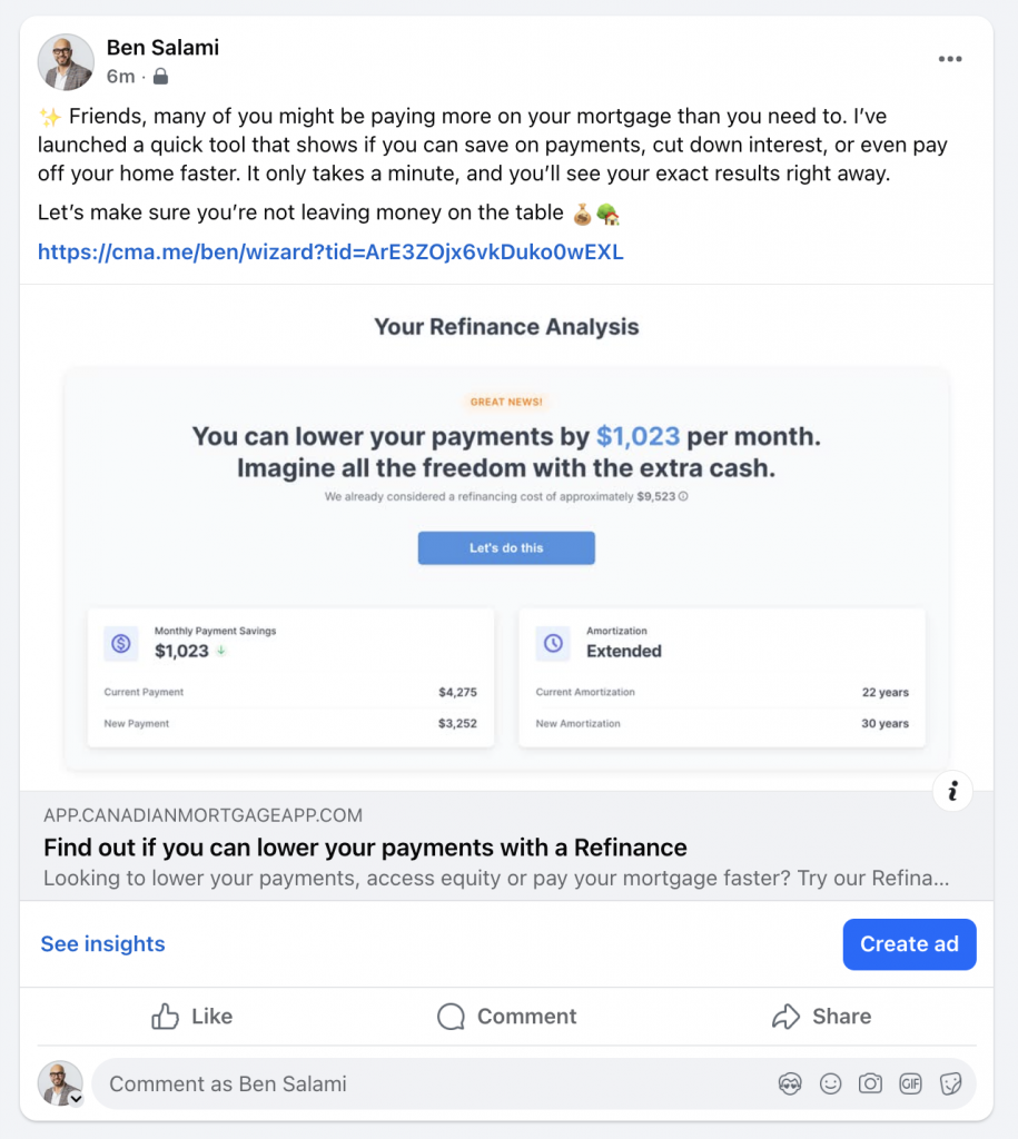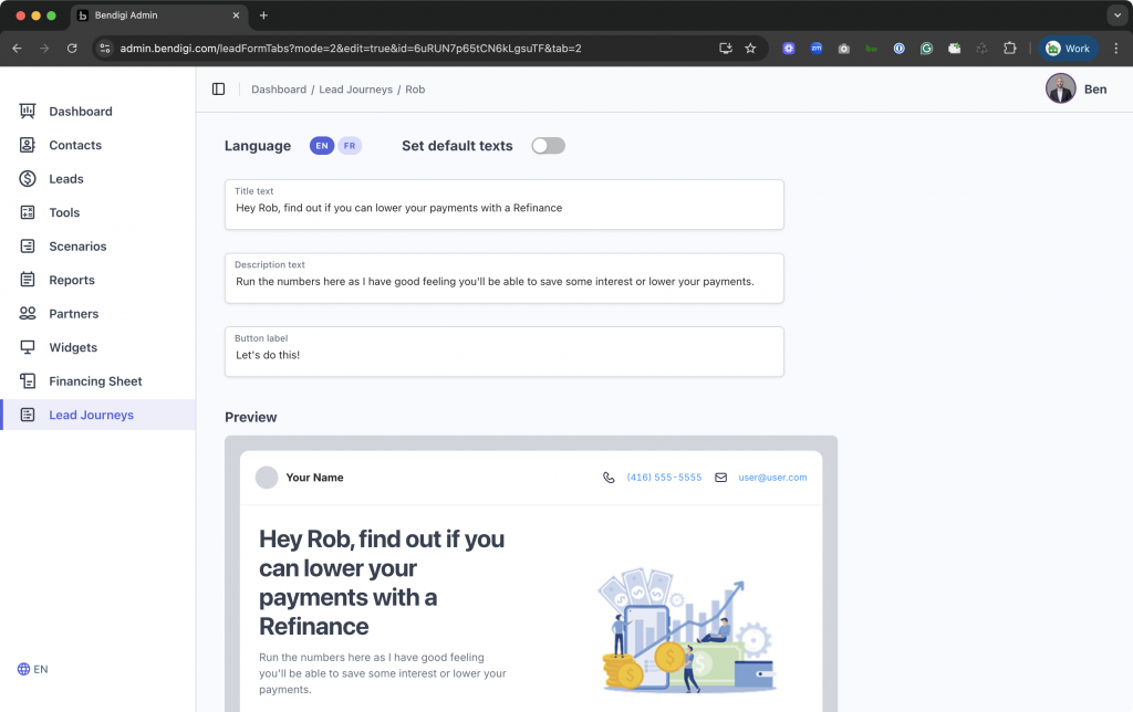 This feature guides prospects through a refinance analysis and provides you their details, ready to follow up.