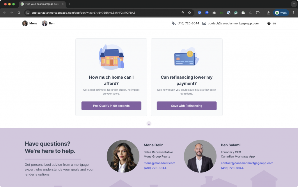 Prospects complete a guided Purchase or Refinance journey before they speak to you. You receive structured data, optimized scenarios, and real qualification context, so your first call is strategic, not investigative.