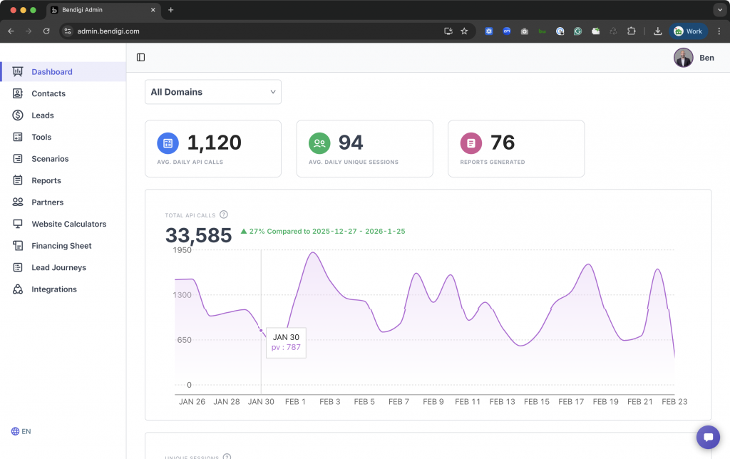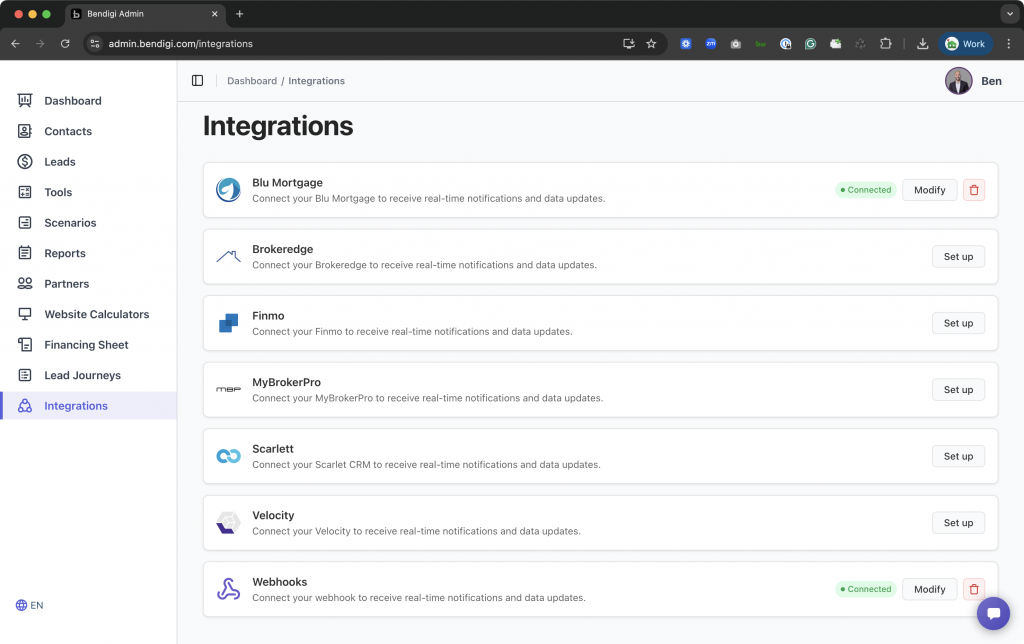 On your desktop, go to https://admin.bendigi.com.