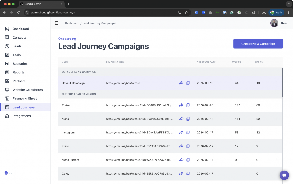 Every Lead Journey link you create is unique. Making it easy to track and compare performance, helping you see which channel or referral partner delivers the best results.