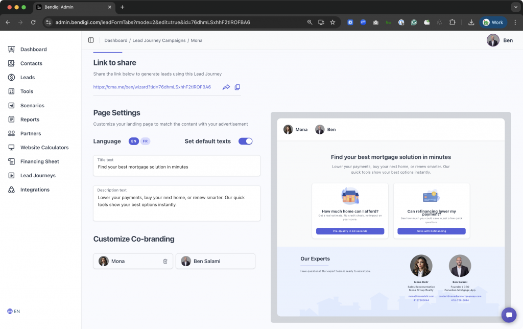 You can share your Lead Journey link anywhere, including social media, email campaigns, text messages, your website, or with referral partners.