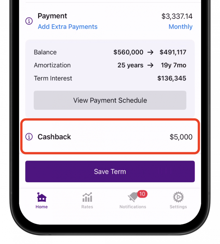 Analyze renewal scenarios with lender cashback incentives to better explain real-world offers.